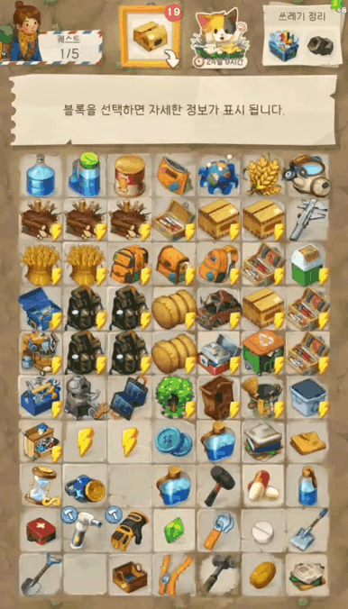 고단계 아이템 하나를 만들기 위해선 저단계 아이템을 2개 합쳐야 하는데, 10단계 아이템을 마련하려면 512개에 달하는 1단계 아이템이 필요하게 된다. 이용자는 수납 정리를 하듯 한정된 공간에서 아이템을 합치고, 정리하는 것이 주된 재미요소다.