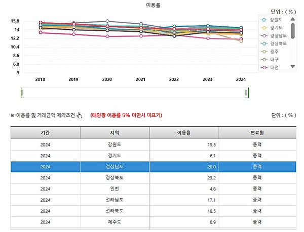 문제는 발전량 대비로도 원전을 비싸다고 말할 수 있느냐다. 전력통계정보시스템에 따르면 태양광 이용률은 지난해 전북이 14.4%로 전국에서 가장 높으며, 풍력은 경북이 23.2%로 최고치다. 이용률은 최대 발전량 대비 실제 발전량 비율이다. 울산이 포함된 경상남도도 20%