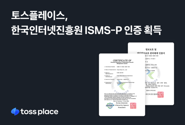 토스플레이스 관계자는 "이번 ISMS-P 인증은 외부 요구에 따른 대응이 아니라 우리가 스스로 선택한 기준을 통해 보안 수준을 객관적으로 검증받은 첫걸음"이라며 "정보보호는 모든 구성원이 함께 실천해야 하는 장기적 과제인 만큼 토스플레이스는 앞으로도 변화하는 위협 환경에 선제적으로 대응하고 고객이 안심할 수 있는 보안 수준을 유지하는 데 최선을 다할 것"이라고 했다.