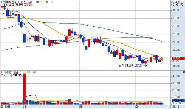 하이트진로의 주가는 지난 3월말 3만원대를 벗어나면서 하락세를 지속하고 있다. 지난 4월 총선 이후 맥주가격 인상설로 반등에 성공하며 2만8000원대에 재진입했지만, 상승폭이 꺾이며 5월말부터 현재까지 2만5000원선에 머물러 있다. 이 기간 동안 시가총액은 2조689억원에서 1조7463억원으로 3000억원이상 줄어들었다.
